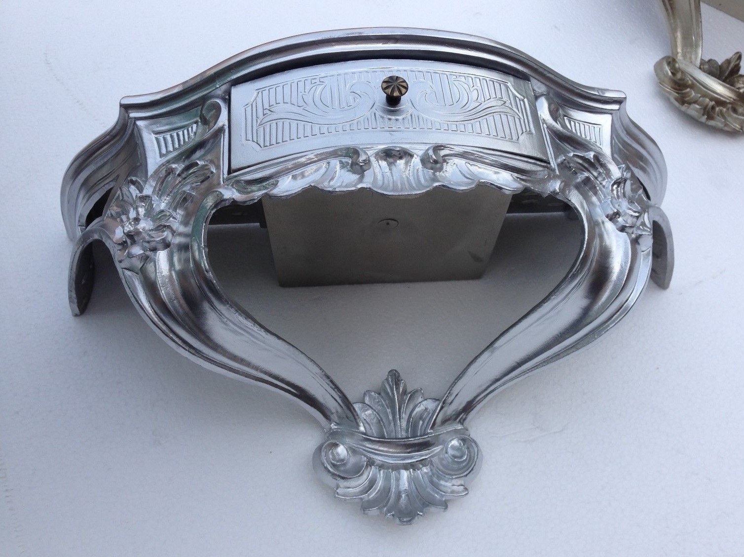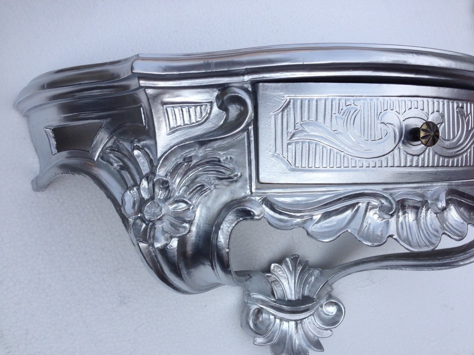 Mobile Preview: Wandkonsole mit Schublade Silber Wandablage in Barock Antik Still B/H/T 50cmx 27cmx20 cm Spiegelkonsole Cp84 Silber