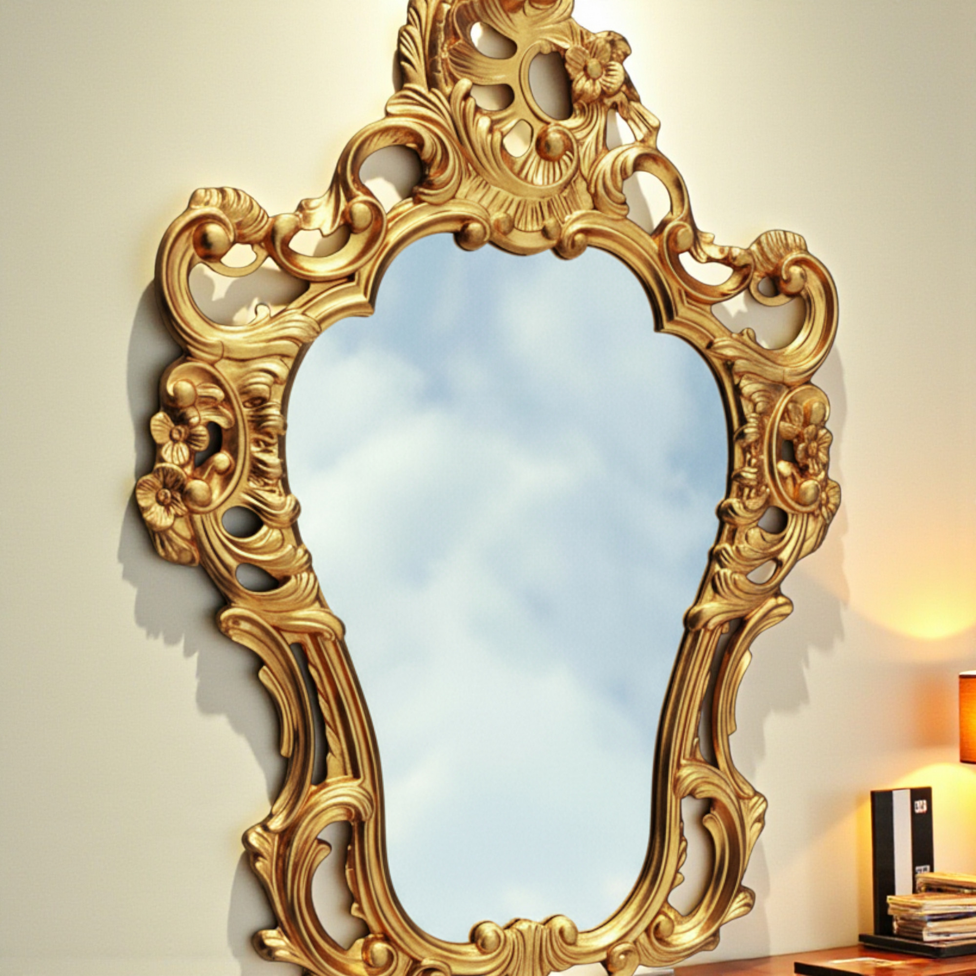 Barock Wandspiegel Gold Oval Spiegel 50x76 Badspiegel Dekorativer Spiegel Prunkspiegel ANTIK 3039